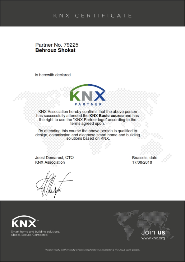 Konnex (KNX) که در گذشته با نام EIB (European Installation Bus) شناخته میشد ، یک استاندارد باز و جهانی است که بیش از 20 سال مورد استفاده قرار گرفته است و مطابق با استانداردهای EN 50090 و ISO/IEC 14543، که توسط بیش از 300 فروشنده پشتیبانی می شود می باشد. KNX تنها استاندارد باز جهانیبرای کنترل خانه و ساختمان می باشد. باز به این معنا است که دستگاههای ساخته شده توسط سازندگانِ مختلف میتوانند با هم در یک شبکه به کار گرفته شوند و به صورت کامل کار کنند. محصولات KNX برای کنترل سیستم های روشنایی، سایه بانها و پرده های برقی و شرایط دمایی مطلوب خانه به علاوه مدیریت انرژی و توابع امنیتی به همراه سهولت در نصب و راه اندازی می باشد.